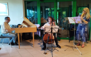 Un concert en trio avec Hélène Viennet à la flute, Eric Fiat au violoncelle et Olivier Fiat à l’épinette a conclu cette soirée.